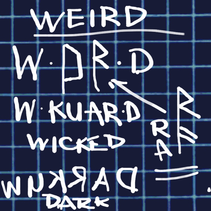 Here we have the Weird, the realm of the Faries. Because AR is a fixed elder rune pairing so not IR. And in runic we get from Left to Right: W-KUAR-D. From which we apparently get the word 'Wicked'. If however we read Right to Left we get: D-ARKU-W. From which we get the Word 'Dark'.